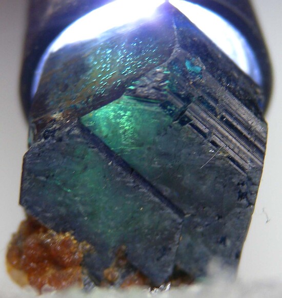 Terminated single crystal of green Vivianite. Translucent, Ex. Dick Bideaux minerals.