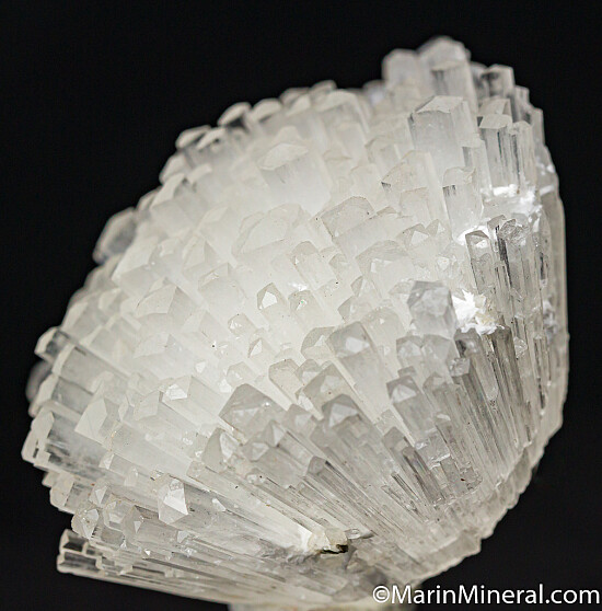 Dense radial spray of colorless Natrolite crystals. Individual crystals reach 5mm in thickness and sparkle across the terminations as you turn it in hand. Ex. Chuck Trantham collection that comes with a couple old labels, a Roberts Minerals label and a Cliff Kruger collection label. Old specimen in great condition.