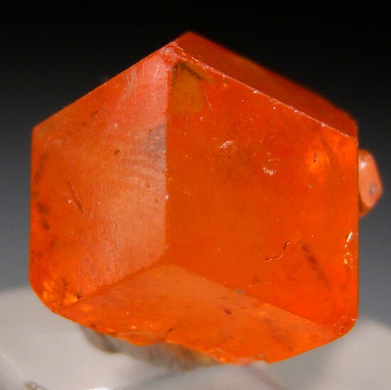 Single Spessartine from 1990s finds at Marienfluss, located near the border with Angola. The color is an amazing vidid citrus orange. These form tightly in a Biotite schist, and this one has a few indentations on the backside, but overall it's in great comdion and complete all around. These were never abundant and now even harder to find.