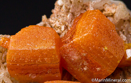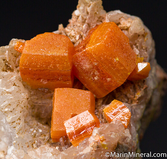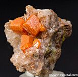 Calcite crystal lined vug filled with chunky orange Wulfenite crystals to 8mm. Ex. Chuck Trantham collection, acquired by Chuck in 1976.