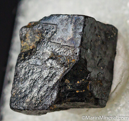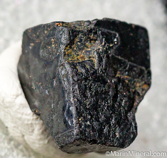 Single black cubic crystal of Thorianite mounted in a Perky box with label. Ex. Chuck Trantham collection, acquired by Chuck in 1998.