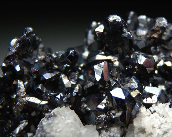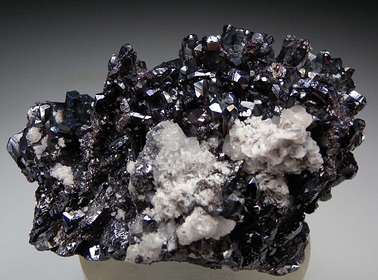 Old specimen of Pyragyrite from St. Andreasberg. Nothing but crystals all over, it's solid Pyrargyrite with a bit of attached white Calcite. There are a couple missing crystals, but it's in great condition overall. Translucent red when backlit.