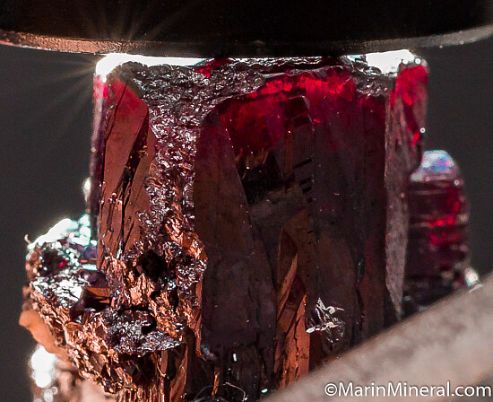 Cluster of diverging Pyrargyrite crystals. Largest crystal is 9mm thick. These are sometimes refered to as 'ruby silver' due to the silver content of the mineral and the deep red coloration.