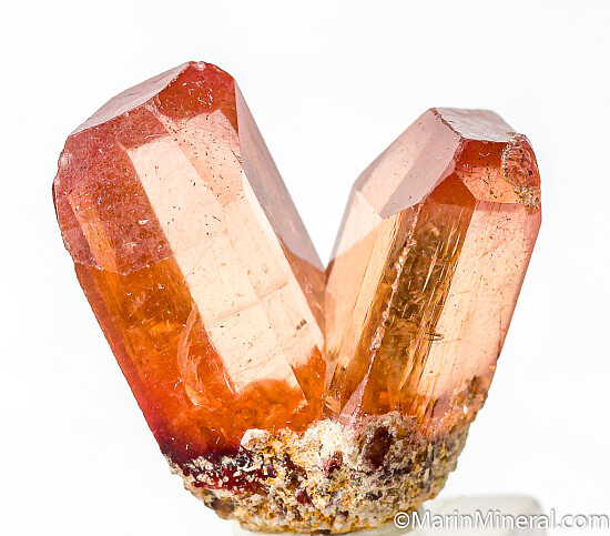Fine quality pair of Topaz crystals. Well terminated with great color. A couple minor tiny edge nicks, otherwise undamaged. Ex. Chuck Trantham collection.