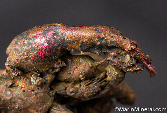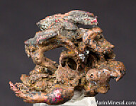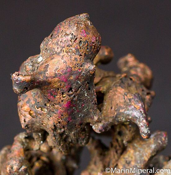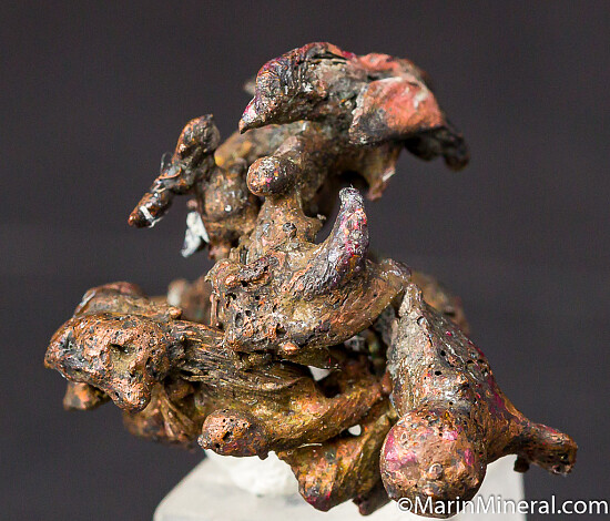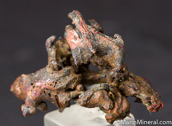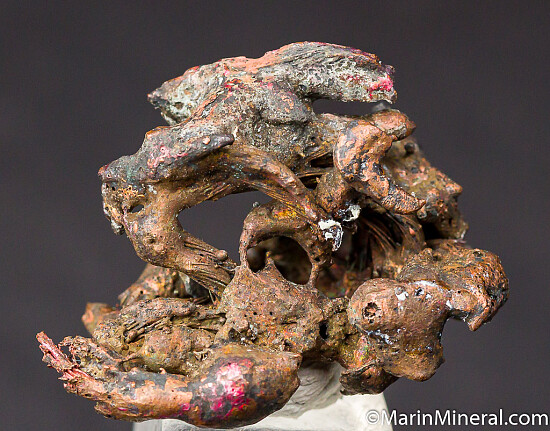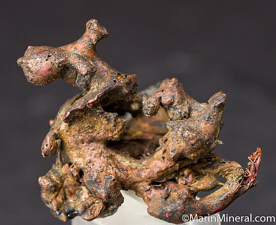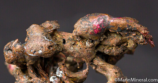 While looking through flats of minerals I aquired from the Chuck Trantham collection, I came across this specimen of what I thought was a really neat Copper specimen, labelled 'Copper-Silver, Keweenaw Peninsula, Michigan'. However closer inspection revealed a core of twisted copper wire. It appears this was created by tacking a torch to a mass of Copper wire and melting it to look like a natural specimen. An old and interesting fake I've not seen before. So here you go, I know some people have a subcollection of faked specimens.