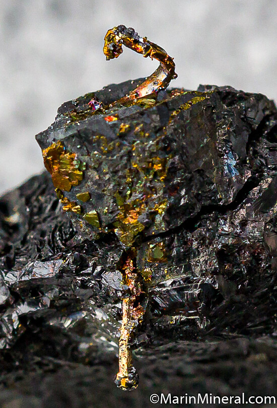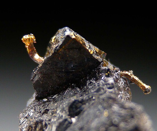 A Gold wire extending through Sphalerite. From end to end, the wire is 1.1cm wide. Ex. Chuck Trantham collection.