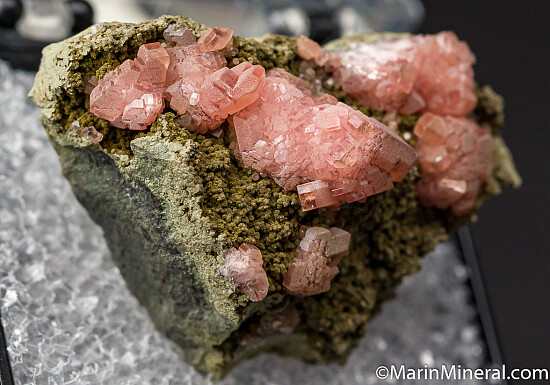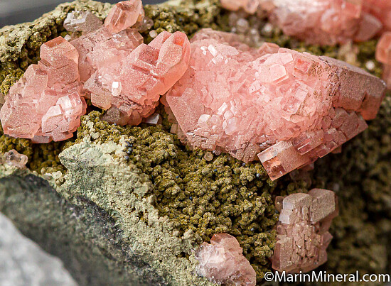 Pink Rhodochrosite crystals on matrix. Ex. Chuck Trantham collection. Old label indicates it was purchased by Chuck at an estate sale in Atherton, California in 1999.