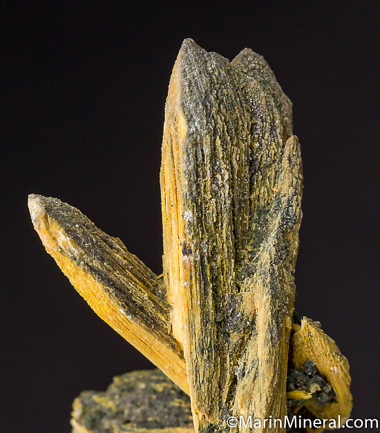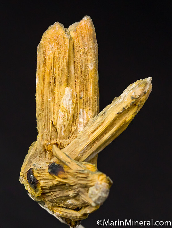 Yellowish Stibiconite that has replaced crystals of Stibnite. A flaoter group of undamaged crystals with no points of contact. For what this is, inthis size range, it's really good. Ex. Chuck Trantham collection.