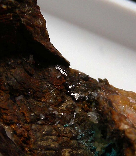 Small metallic crystals of Linnaeite on matrix. Linnaeite is a rare cobalt sulfide mineral.