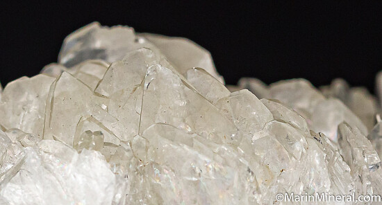 Glassy, transparent Colemanite crystals from Death Valley. This canyon was named after the teams of mules that pulled massive wagons hauling borax back in the 1800s. This locality is located in what is now a national park and can no longer be collected from. Ex. Chuck Trantham collection.