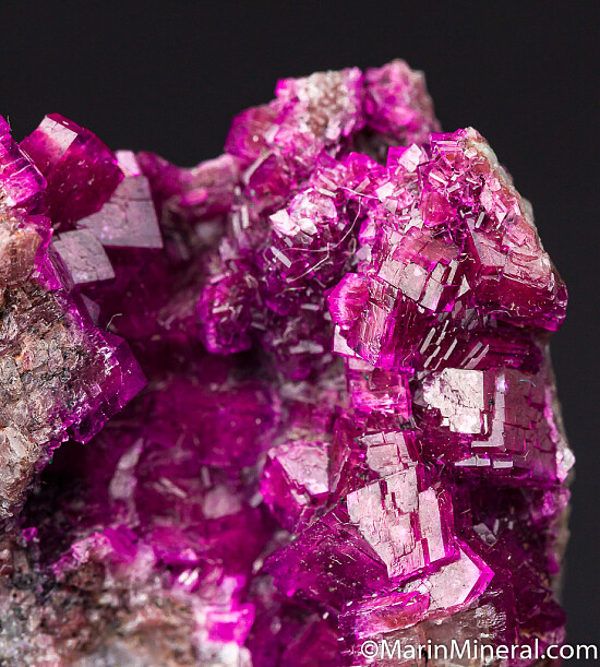 Vivid purple/pink Cobaltian Calcite crystals lining a vug. Great color and luster, crystals show areas of transparency.