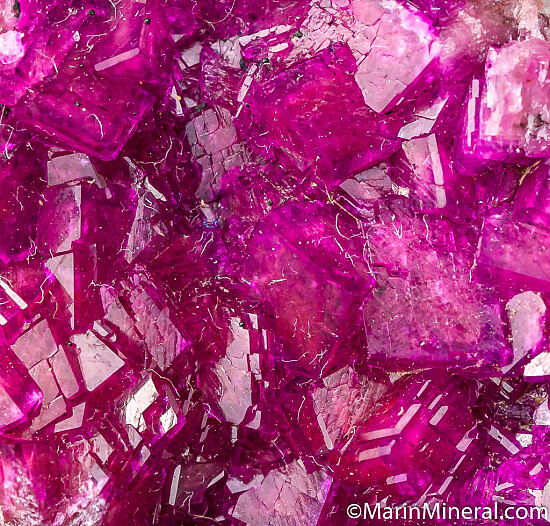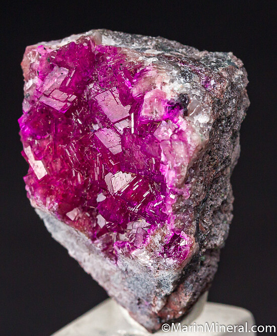 Vivid purple/pink Cobaltian Calcite crystals lining a vug. Great color and luster, crystals show areas of transparency.