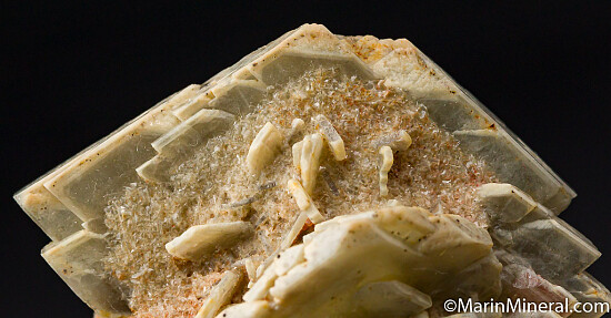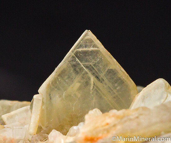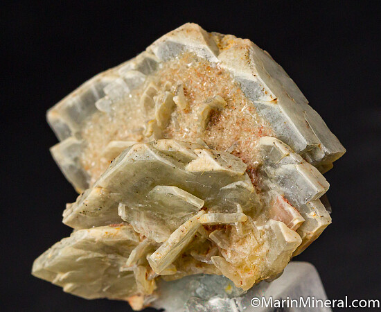 Cluster of greyish blue to yellow Barite crystals from a classic and seldom seen Colorado locality. In excellent condition, the main crystal is 4.3cm and pristine. Ex. Chuck Trantham collection. The old label notes it was bought at the Sands Hotel in Tucson in 1979.