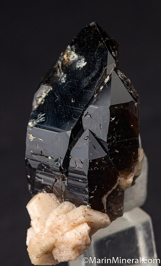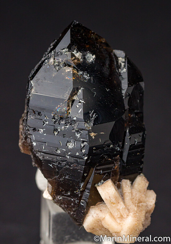 Smokey Quartz crystal and Feldspar from the pegmatites of Colorado. Transparent with a deep smokey color. Ex. Chuck Trantham collection.