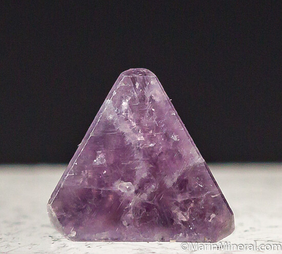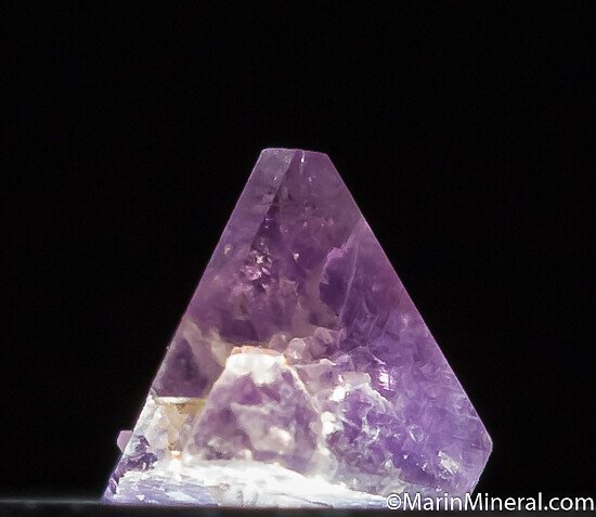 Complete and undamaged tetrahedron of Chambersite, a rare mineral found in salt formations in a small number of localities worldwide. One tip is slightly shorter and divided into 3 separate termiantion faces. Translucent 'Amethyst' purple in color and collected by Fred Pough in 1970. Ex. Chuck Trantham collection.