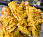 Bright yellow crystals of Smithsonite replacing Dolomite, with the curving form of the former Dolomite crystals clearly evident. The yellow color is caused by inclusions of Greenockite. Beautiful specimen! Ex. Chuck Trantham collection.