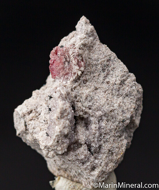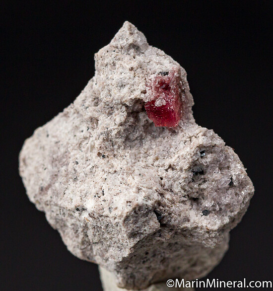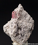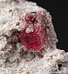 A 4.5mm crystal of Red Beryl on Rhyolite matrix, associated with drusy Topaz. Ex. Chuck Trantham collection.