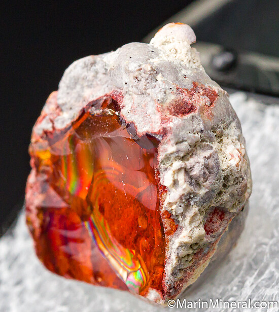 Transparent red 'Fire Opal' in Rhyolite matrix. Ex. Chuck Trantham collection.