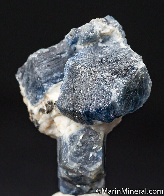 Cluster of deep blue, translucent Sapphire crystals from recent finds in Canada. Four intergrown crystals forming a nice cluster, better than most. Valued at $250