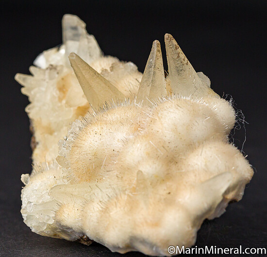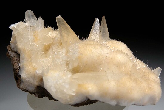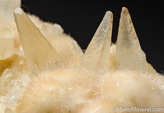 Elongated scalenohedral Calcite crystals atop white needles of Natrolite. Ex. Chuck Trantham collection and a beautiful example of a northwest USA zeolite, one of Chuck's specialties due to his geological work in the area. This was self collected by Chuck in 1962. Though he collected hundreds of specimens, this one was considered fine enough by Chuck to be saved in in his personal collection and comes with his hand written label. Valued at $200.