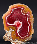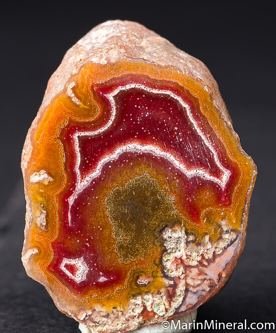 Both halves of a nodule of banded Laguna Agate with colors of red, pink, white, and yellow. Old piece from the Chuck Trantham collection.