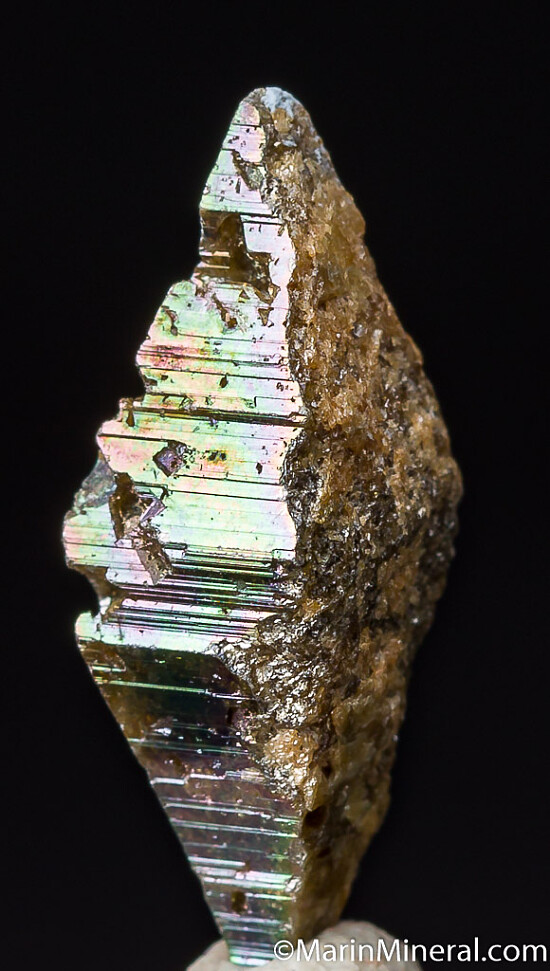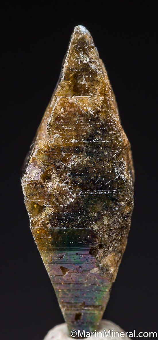 Elongated, double-terminated Anatase crystal with attached Rutile. Ex. Chuck Trantham collection.