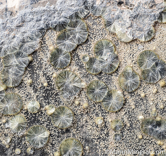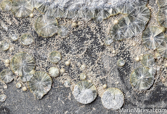 Radial crystal groups of Wavellite all over specimen. Ex. Chuck Trantham collection and comew with a label from the Cornish mineral collection of K.P. Hammond