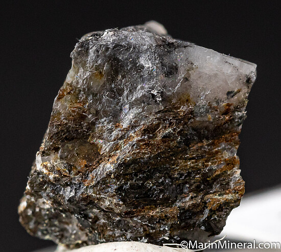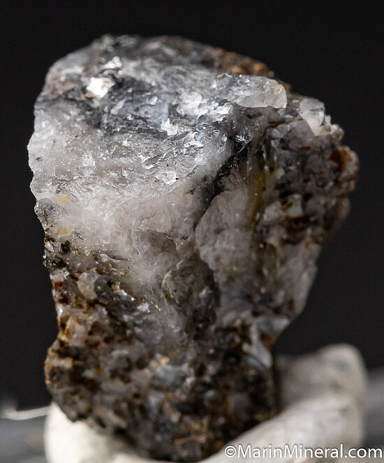 Small crystals of Hedleyite in Quartz from the type locality for the species. Hedleyite is a rare bismuth telluride species found in few localities worldwide. Ex. Chuck Trantham collection.
