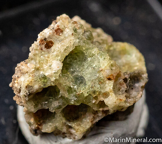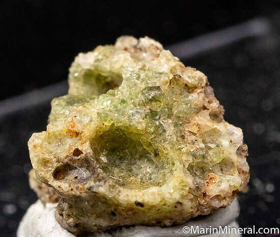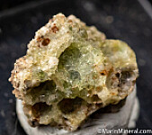Green 'Trinitite' specimen (Quartz and Feldspar) formed by the world’s first atomic bomb, which was detonated on July 16, 1945, at the White Sands Missile Range. The test was known as Project Trinity. Sand in the vicinity of the explosion was fused by the intense heat into a green glass-like solid, and was called Trinitite. This locality is off limits to collecting. Ex. Chuck Trantham collection.