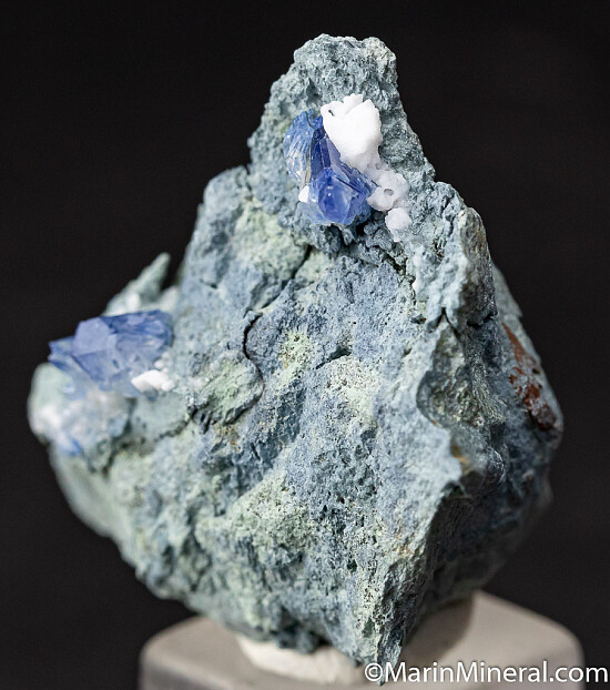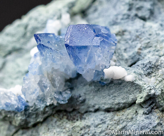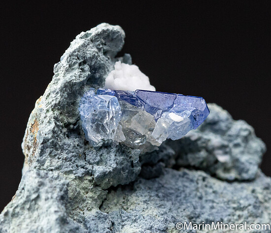 Three Benitoite crystals to 9mm on matrix. The crystals are somewhat light in color, but they are gemmy and glassy.