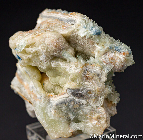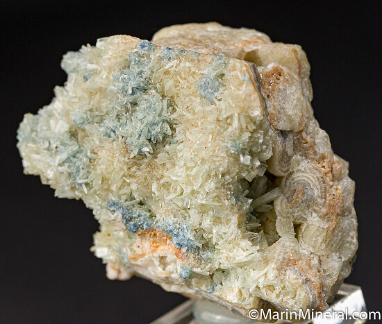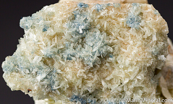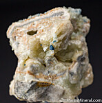 Green Paravauxite crystals and blue Vauxite on Wavellite. Ex. Chuck Trantham collection that also comes with old Frank Edwards collection and Steve Perry Minerals labels.