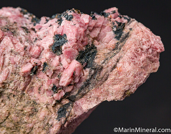Bright pink Rhodonite with black Franklinite. Ex. Frank Edwards collection, ex. Chuck Trantham collection. Purchased by Chuck from John Veevaert (Trinity Minerals) in 2006.
