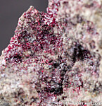 Abundant crystals of cherry-red Proustite lining a vug in matrix. Areas of Silver are also present on/in the matrix. Ex. Chuck Trantham collection.