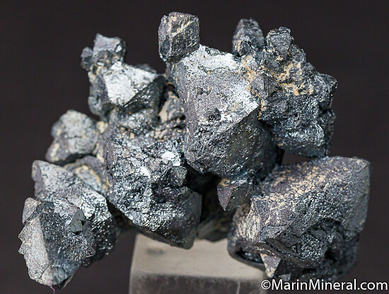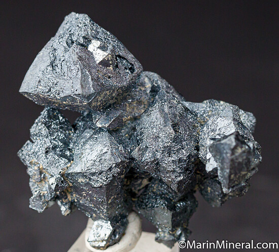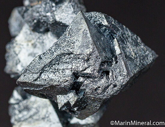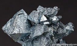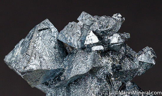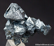 Undamaged crystals group of Hematite pseudomorphs after octahedral magnetite crystals from the 2002 find in Argentina. Fascinating, highly sculptural specimen with bright, silvery metallic luster. Largest crystals is 2.5cm in size. Ex. Chuck Trantham collection.