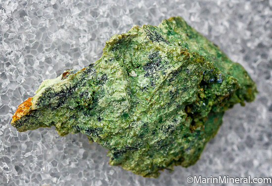 Green Goudeyite, a rare copper arsenate mineral, from the type locality of the Majuba Hill Mine. The mineral is named after Hatfield Goudey, an economic geologist, mineral collector and dealer in microscopic specimens who contributed to the knowledge of the type locality. Ex. Chuck Trantham collection.