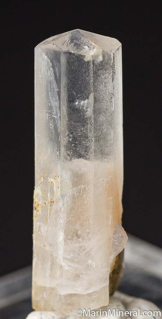 Single Natrolite crystal with transparency in the upper half. This is a good sized crystal for the locality, located in the vicinity of the Benitoite Gem Mine. It's a complete and undamaged crystal. Ex. Chuck Trantham collection. These are hard to come by and I was happy to find this one in Chuck's collection.