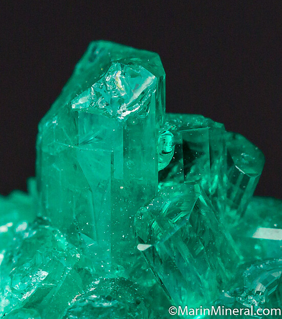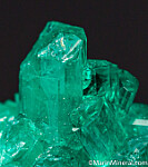 Cluster of lab grown Emeralds created by a man named Carroll Chatham of San Francisco, California. Chatham first started experimenting growing crystals in his garage as a 12 year old boy, later graduated from the California Institute of Technology, and perfected the process to grow emeralds in 1938. These are real Emeralds, just grown in a lab simulating natural processes of the earth. Ex. Chuck Trantham collection.
