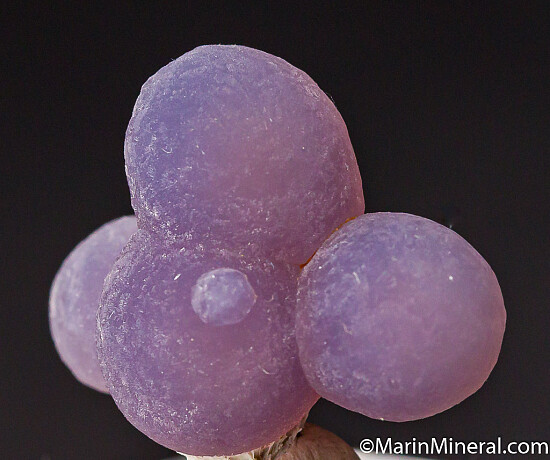 Cluster of 4 interconnected spheres of purple Quartz var. Amethyst known as Grape Agate. Good spheres all around, and it has the sparkling luster characteristic of the best of these. These is a fantastic example of larger sized spheres interconnected with no points of contact, a floater. Perfect and undamaged.