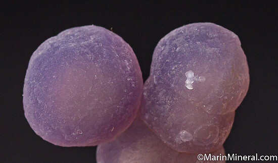 Cluster of 4 interconnected spheres of purple Quartz var. Amethyst known as Grape Agate. Good spheres all around, and it has the sparkling luster characteristic of the best of these. These is a fantastic example of larger sized spheres (largest is 1.2cm) interconnected with no points of contact, a floater. Perfect and undamaged.