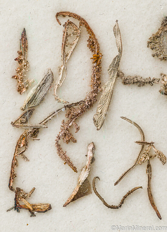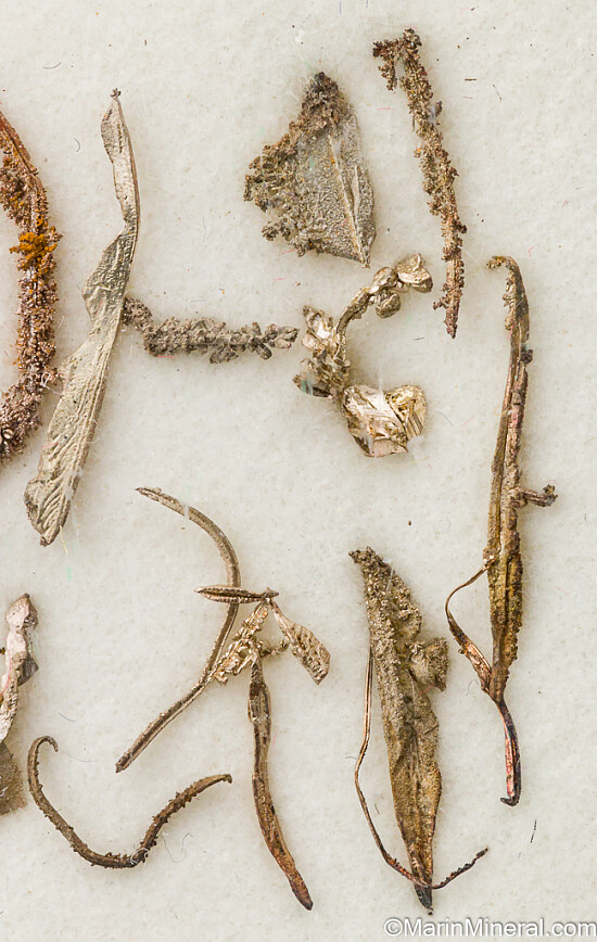 A 4 x 4 x 1 cm plastic container filled with 15 specimens of crystallized Silver. Most are long spinel-twinned crystals. This is a good lot of crystals. Ex. Chuck Trantham collection.