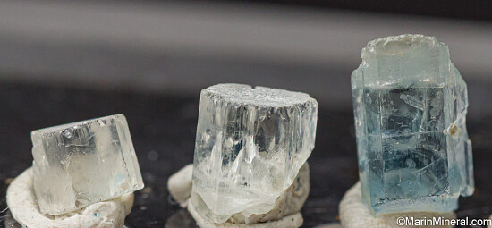 Seven small pieces of Jeremejevite that could be used for facet or cabbing rough. Colorless to light blue in color. Total weight is 3.8 carats.