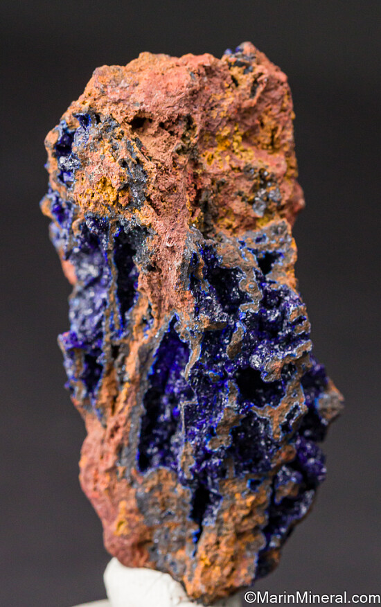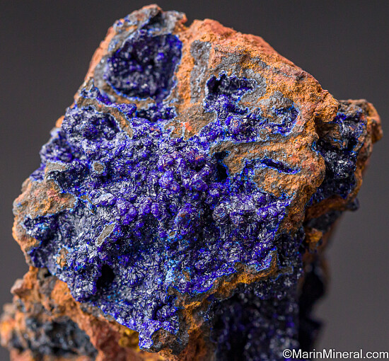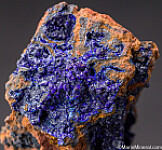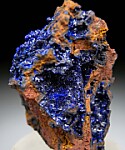 Bright, deep blue Azurite crystals lining multiple vugs in a limonite matrix. Good crystals on all sides. Ex. Chuck Trantham collection.