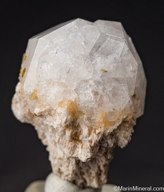White globe-like crystal of Analcime on a small amount of matrix. Gorgeous translucent to transparent crystal, complete all around and undamaged, a real stunner. East coast classic. Ex. Chuck Trantham collection.
