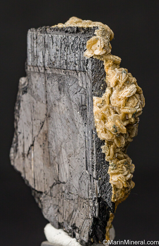 Large, heavy black terminated Wolframite crystal with the backside covered by hundreds of tan Siderite crystals. Ex. Chuck Trantham collection.