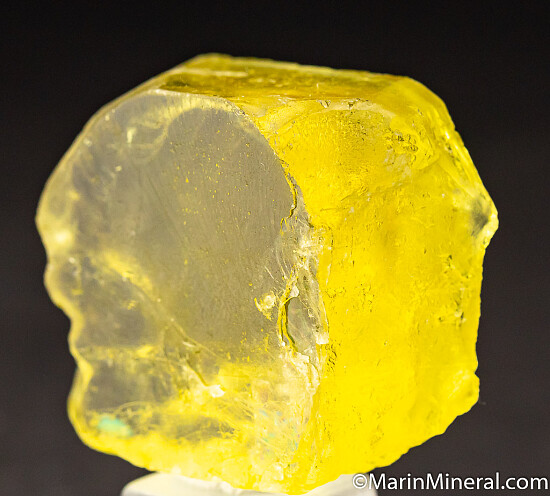 My last Sanidine, a big transparent crystal. Feldspar is a mineral not ususally known for fine collector gem crystals, but at this locality in Madagascar, amazing water clear crystals are sometimes found. This is a large, thick crystal in good condition, crystal faces on the front, top, top left, and right sides, a cleavage face on the back and edge chipping on the lower left side. The crystal has a good yellow coloration, is internally transparent, and looks (to my non-gemcutter eyes) like it could cut a large gemstone. Weighs 44.15 grams.