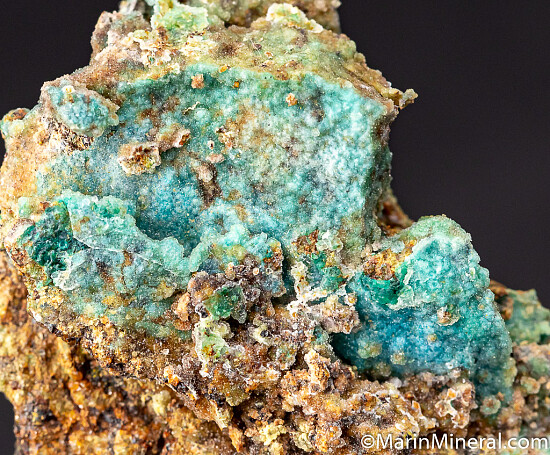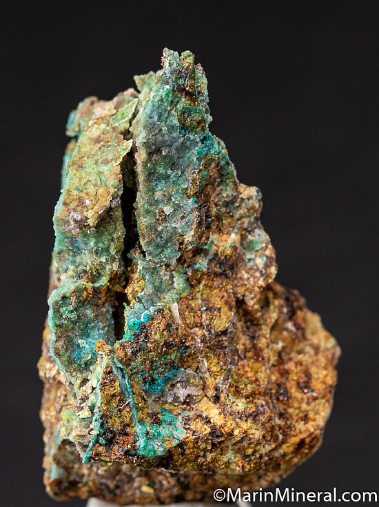 Bright blue Chrysocolla covered by a thin layer of Quartz on multiple sides of specimen. A colorful and uncommon specimen from an obscure Nevada copper mine.