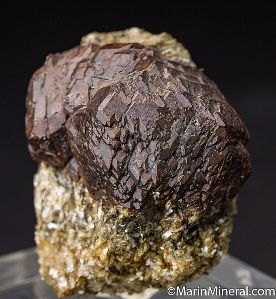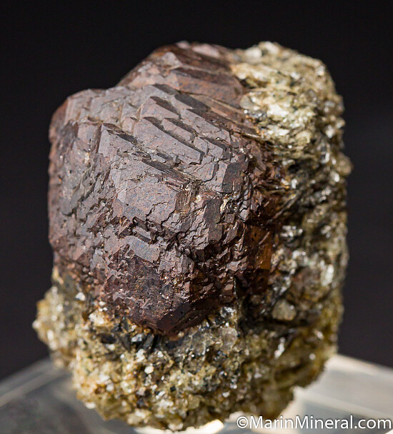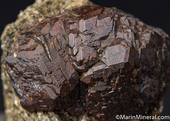 Cluster of large Andradite garnet crystals exposed in a schist matrix. Good cluster of undamaged intergrown crystals. This was part of a collection built in the 1980s and no locality information was available. Valued at $200.