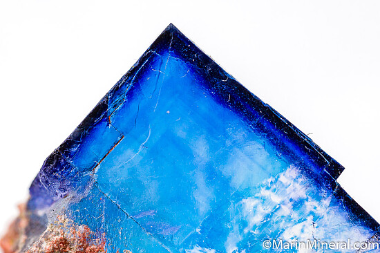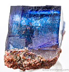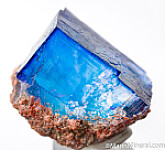 A sharp, transparent blue cubic crystal. In great condition and all the faces are natural, not cleavages. The blue color of the Halite is caused by natural radiation in the mine.