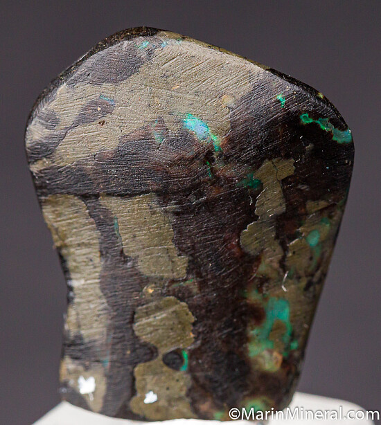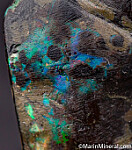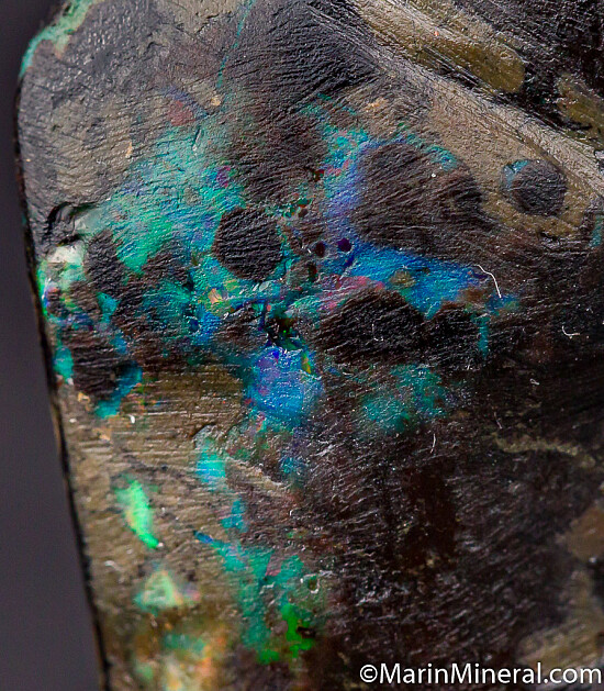 Black opal that has completely replaced a piece of fossil Bamboo from recent finds in Java. It is black with areas of blue, red, and green color. These were found in the past 2 years and are uncommon.