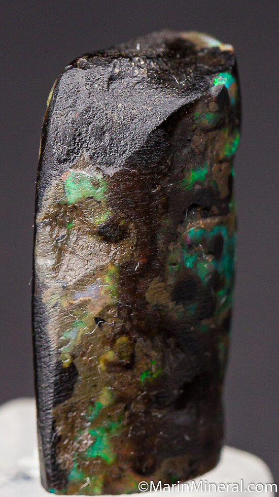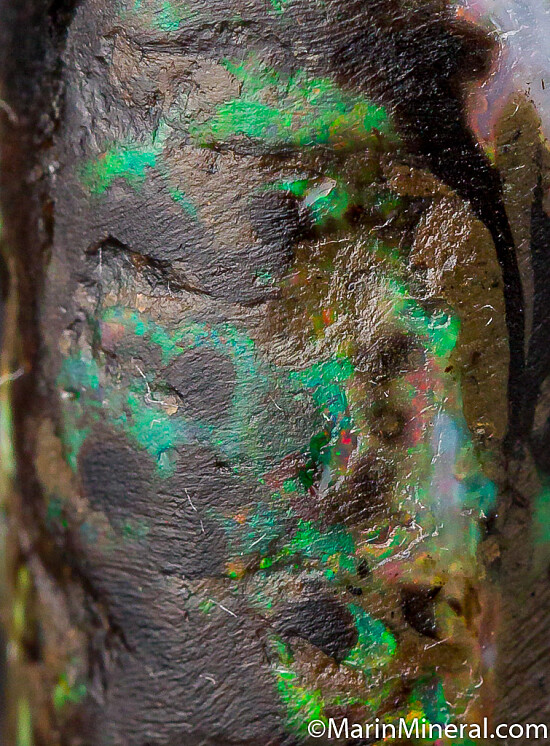Black opal that has completely replaced a piece of fossil Bamboo from recent finds in Java. It is black with areas of blue, red, and green color. These were found in the past 2 years and are uncommon.